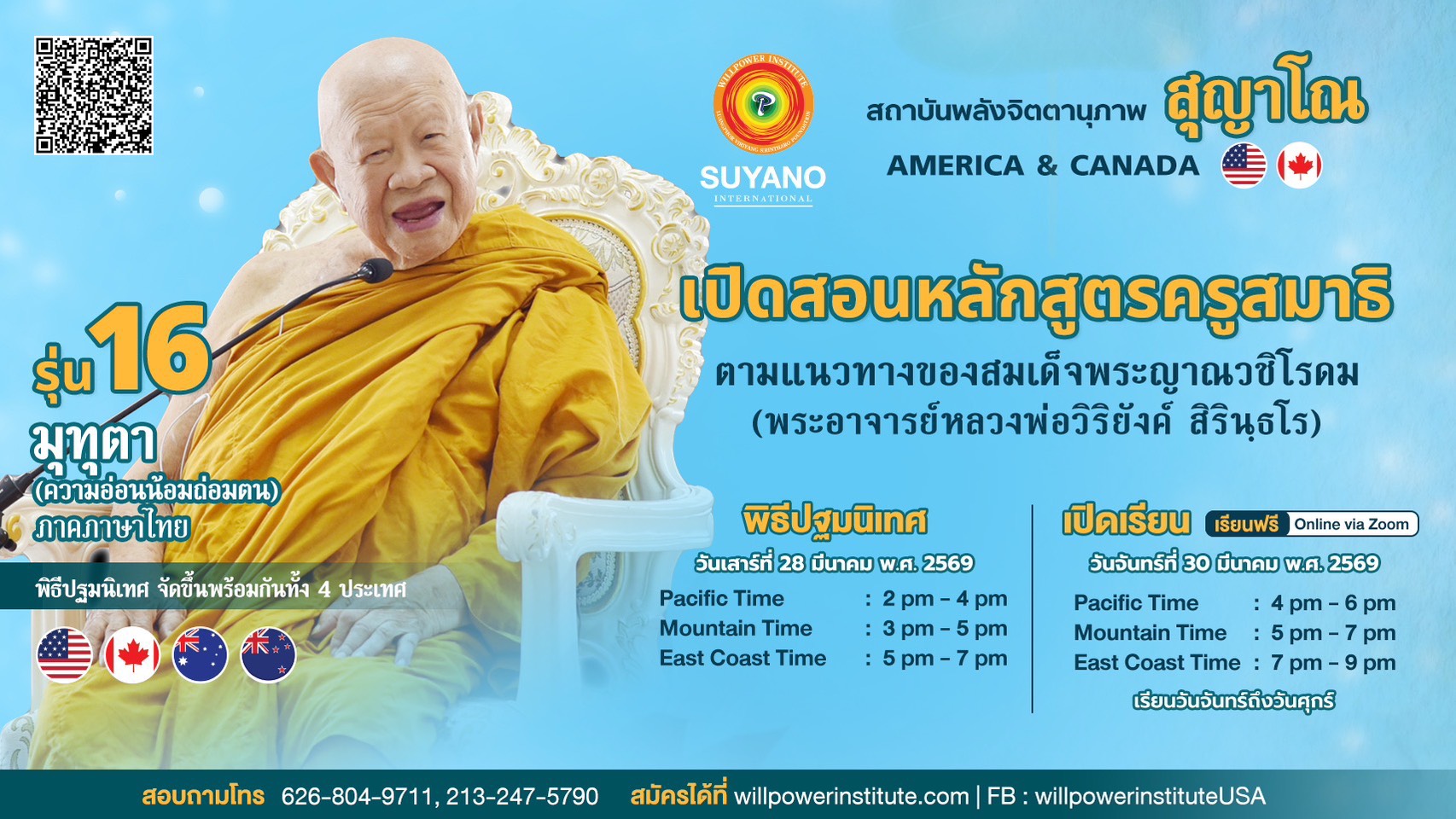 เปิดสอนหลักสูตรครูสมาธิ รุ่น 15 ภวังคจิต (จิตส่วนลึกที่สุดของจิตใจ) ที่ สนง.ใหญ่ เมืองโพโมนา รัฐแคลิฟอร์เนีย สำหรับผู้อาศัยในลอสแอนเจลิส และปริมณฑล